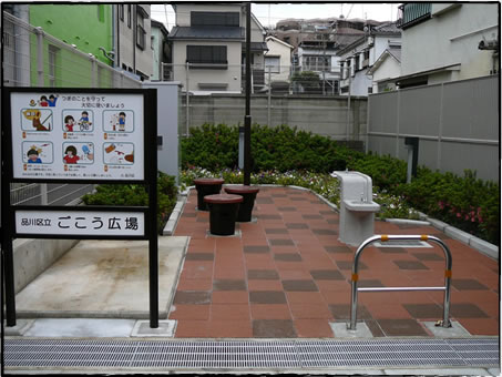 筆者が見つけた小さな公園のスペースは、小さなコミュニティガーデンを作るには丁度良い広さのような気がします。この公園を作る際に、市民からの意見募集のような労力を使ったのだろうか、と思って品川区の公園設計課に問合せたところ、きちんと公聴会を開いて住民の意見を聞いたそうです。区によると、住民からは防災的な機能が欲しいとのこ意見があり、座る人が存在するとは思えなかった椅子様の物体は、実は「かまど」なのだそうです。