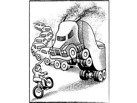 その視点の多様さ、実践的で時には奇抜な発想、独得のユーモアで、安易主義者に可能性を示唆する。車社会を直接批判する人たちだけでなく、健康のために徒歩、自転車を奨励するグループも、道路建設で破壊される自然を守ろうとする会も、子供の住みやすい環境やお年寄りも参加出来る町作りを目指す団体も、地球温暖化を危惧する団体も、もっと大きな意味での車産業中心の《大企業利益追求型》資本主義を批判する人も、カーバスターズを通じてリンクしていけるのが、カーバスターズの可能性だ。