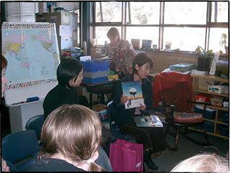 ピース・ケータリングで子供たちにに絵本「My Hiroshima」を朗読
