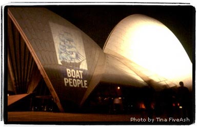 今日のオーストラリア多文化主義 イギリス系移民がほとんどだった当初はアイルランド人が、そして第二次世界大戦後にはイタリアやギリシャから大量移民した南ヨーロッパ系移民が、"エスニック"としてレッテルを貼られた。 1.2001年8月オーストラリアの海域内で433人の難民を乗せた船が沈みかけているのを、通りかかったノルウェーのタンパ号が救助、オーストラリアに向かったがオーストラリアは難民たちの入国を拒否。結局はオーストラリアが資金提供し、ナウルとニュージーランドが難民たちを受け入れることに落ち着いた。オーストラリア内で認定された難民に関しては自動的に保護義務が生じることから、庇護希望者の不法な入国を未然に防ぐもの。 2.Al-Hayat Arabic Newspaper Level 2, Suit 208 The Chase Centre 25 Smart Street Fairfield NSW 2165 phone: (02) 9728 9004 fax: 9728 9005 ABN 3.1991年のマケドニア共和国独立の際、その国名に関して隣国ギリシャが抗議、反対を唱えたが、この対立はオーストラリア内のギリシャ人コミュニティとマケドニア人コミュニティにまで波及し、関係は一時緊迫したものになった。また数年前セルビア系のサッカー選手がクロアチア・コミュニティのサポーターが多い相手チームとの試合で、三つ指を胸にあてセルビア軍の敬礼ジェスチャーをしたことから、クロアチアン・サポーターの反感を買い、選手に暴行を加えようと大騒ぎになった。このようにオーストラリア国内でエスニック・コミュニティ間の対立が起ることに憤りを感じている人も多い。 4.We Are All Boat Peopleのキャンペーン-オーストラリアのシンボルであるオペラハウスで。写真提供: We Are All Boat People (http://www.boat-people.org/) |