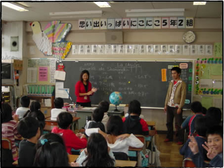 ある時カルロスの担任と「せっかくカルロスがクラスにいるんだから、それをきっかけに他の児童も何か学ぶことができないだろうか」と話し合う機会があった。この先生は市が主催する教員のためのスペイン語講座にも参加しており、学校内でも国際理解担当となっている若手教員。日本語教室担任とも密にコンタクトをとっているため、カルロスの日本語学習進歩をある程度把握している。