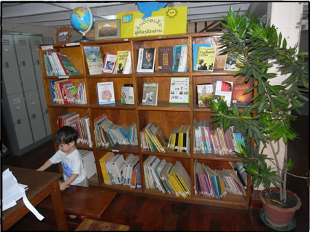 空き教室に本棚と備品と本を整備し、運営方法や読書指導を伝え、学校に図書室を作る