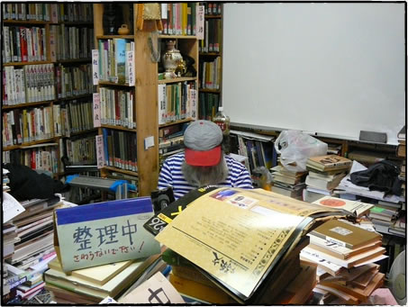 大阪市東淀川区の3階建ての灰色の鉄骨ビルに入ると、1階の階段から3階までが、本で埋め尽くされていた。床から天井までぎっしり詰まった本棚が、人の歩ける幅を残して、迷路の壁のように隙間に立てられている。本棚の間に、きれいに片付けられた小部屋や、テーブルの上に本が積み重なっている小部屋がある。