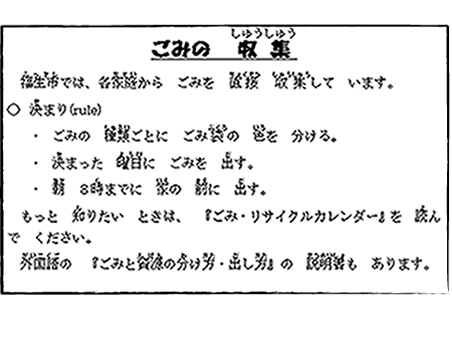 「税金の納め方」や「外国人登録の仕方」など、行政が外国籍住民に伝えたい暮らしの情報を掲載しているが、このたび「やさしい日本語」の有効性、実用性が高く評価され、この便利帳に「やさしい日本語版」を載せるべく、プロジェクトメンバーは市の職員と共に制作に取り組んでいる。(2009年4月に福生市の公式刊行物として発行予定)