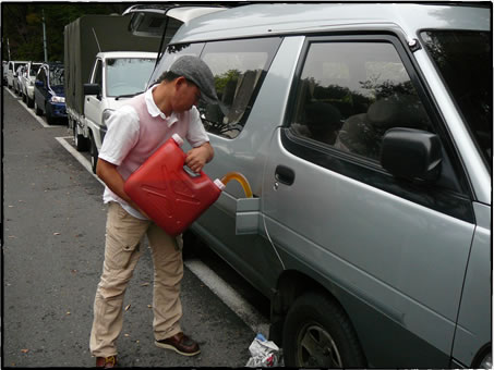 天ぷら油で走る車に乗る人々(WVOというバイオディーゼル燃料)