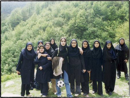 女子学生が山に遊びに来ていました。学校帰りのようなので、みんな黒い学校用の服を着用しています。イランの女性はサッカー観戦が基本的に禁止されていますが、女の子は大好きです。