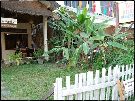 メコン川沿いの賑やかなファーグム通りから少し入ったところにある、名前のない小さなカフェ。店先には「house roasted coffee」の看板が掲げられ、そこがカフェだと気付かないで通り過ぎてしまいそうな小さなお店。この店の店主、松島陽子さんにお話を伺ってみた。