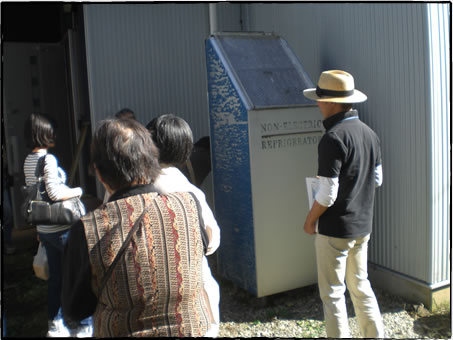 まず、母屋の前にあった、非電化冷蔵庫。これ、原理は、天気予報でおなじみ、「放射冷却」だそうです。