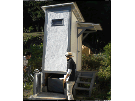 バイオトイレは、便を微生物の力で分解して肥料にしますが、冬の間は、微生物の分解力を維持するために、ヒーターを使って土壌を温める必要があるそうです。そのヒーターに、電気を使わざるを得なかったのが、エコロジー派には難点だったのですが、藤村さんたちは、「潜熱蓄熱材」という素材を使うことで、太陽熱を利用し、非電化で40度の熱を保つ方法を開発しました。実際のトイレを使用しての実験は、この冬が初めてということで、実用化は目前ということです。