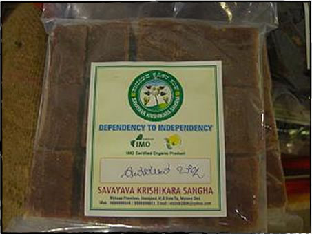 オーガニック認証を受けた黒砂糖。輸出向けではなく、近年バンガロールでの需要が増えているという。