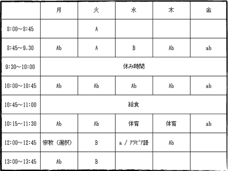 入学1週間後。息子が持ち帰ってきた時間割は、以下の通りだ。