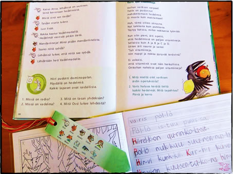 入学二日目。息子が早速、母国語と算数の教科書とワークブックを持って帰宅し、初めての宿題も出た。宿題は、母国語はアアコセット(フィンランド語のアルファベット)の書き取りや単語の音読など。算数は、1から10までの数を数えることや、塗り絵も交えた「数遊び」が主だ。