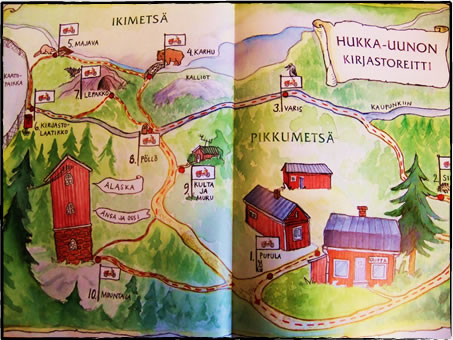 教科書は一冊の本のように、架空の地域に住む登場人物が物語を織りなしていく。教科書中央に描かれている地図は息子のお気に入りで、このページを何度も開いては場所を確かめる。