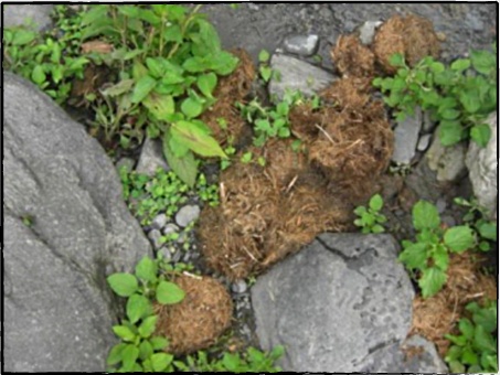 畦道に転がる野生ゾウの糞