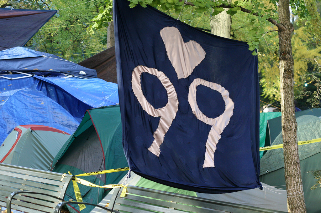 キーストーン反対運動の集まりが行われた公園は、Occupy Portlandのベースキャンプのすぐ隣だった。