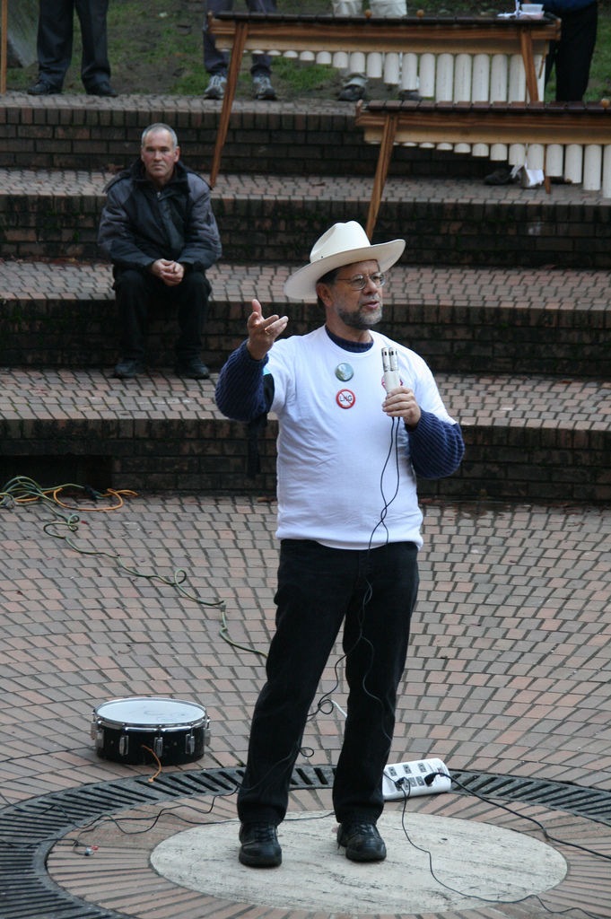 正直なところ個人的にはOccupy運動の「だらだらした感じ」に苛立ちを感じることもあり、このキーストーン反対の集まりも、理想を述べることだけに終始してしまうのでは、という懸念があった。実際に、キーストーンについて講演が行われていたとき、タバコの吸い殻やコカコーラの空き瓶をポイ捨てしながら雑談を続けていた「99%」のバナーを掲げた人たちの姿も見られ、「これでいいのだろうか」と思う一面もあった。