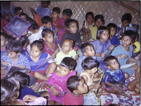 靴や清潔な服を身につけていない多くの子供達。