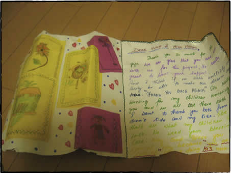 趣旨は、物を送る事がメインではなく、 その自分が送った物が使われている写真を手にする事で、リアリティを持ってこういった問題を考えて欲しいというところにあります。